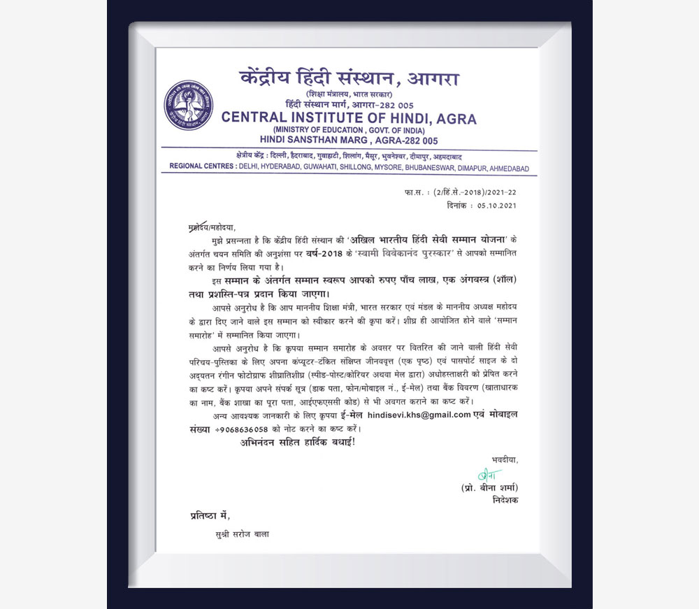 - Dr Baldevanand Sagar, incharge of Sanskrit News Broadcast, All India Radio