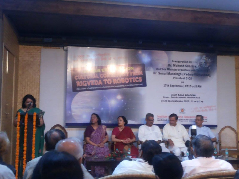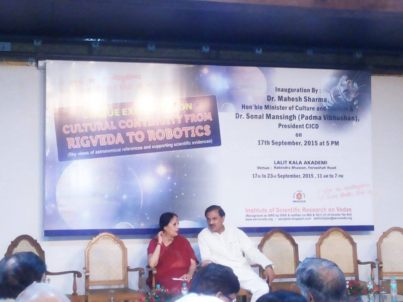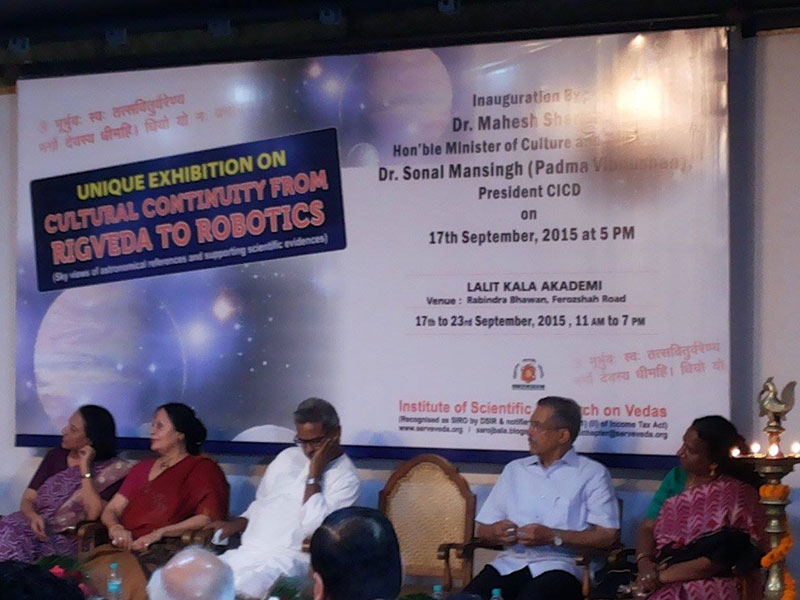 This unique Exhibition was put up by I-SERVE Delhi Chapter on 17-23 September 2015 in Lalit Kala Academy, in order to showcase the outcomes of multi-disciplinary scientific research carried out for more than 12 years for information of the general public. The Inaugural function was organized in Rabindra Bhawan on 17 September 2015, with the support of Sangeet Natak Academy. The Exhibition was unveiled by Dr Mahesh Sharma, Minister of Culture; a very special address was delivered by Dr Sonal Mansingh (Padma Vibhushan) and Aashirvachan from Dr Krishan Gopal Sharma, Sah Sar Karyavah of RSS.