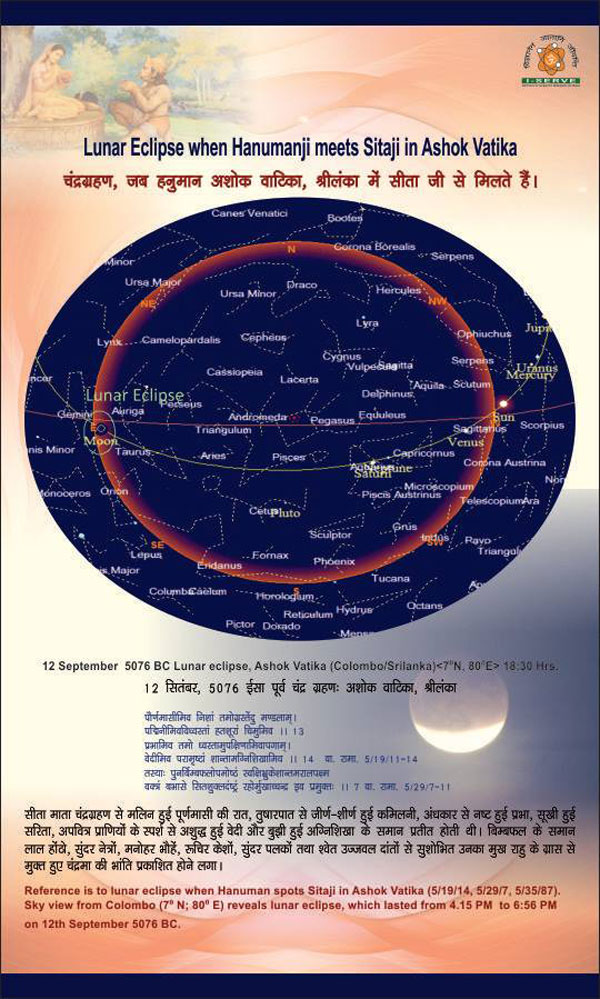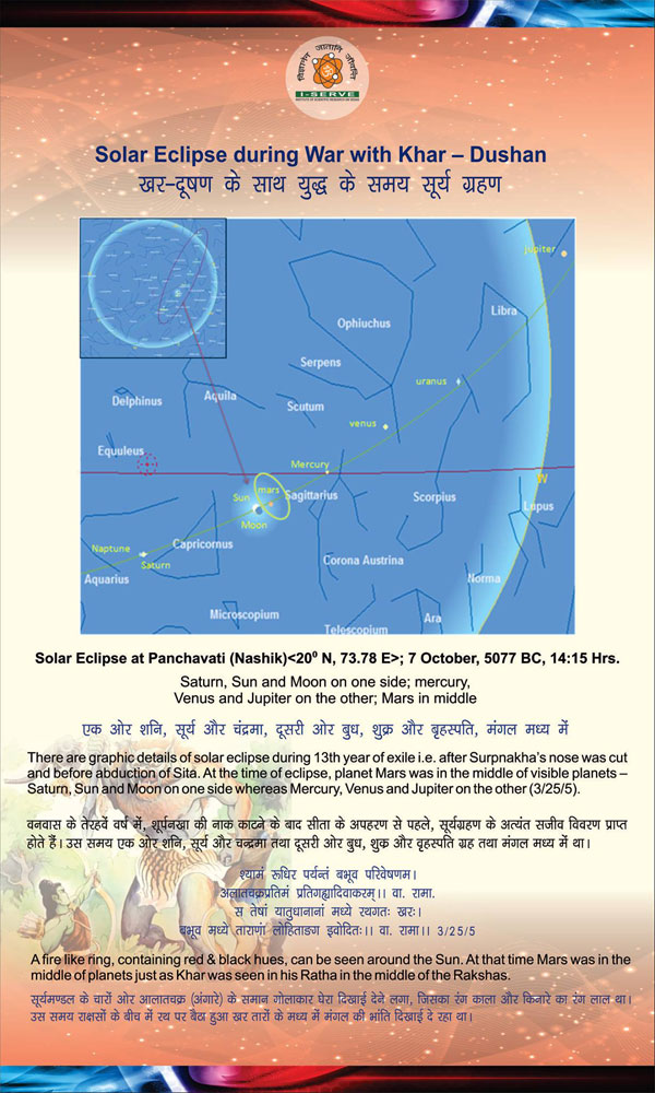 This Part 2 video displays the sky views of astronomical positions described by Maharshi Valmiki at the time of departure of Shri Ram for 14 years of exile. See the sky view of eclipse seen in Panchavati just before war with Khar Dushan. Know the date when Hanuman met Sita Ji in Ashok Vatika. Hear Dr B K Bhadra from ISRO Jodhpur Centre, explaining that remote sensing imagery of paleo-channels of Saraswati River has revealed that this was a mighty river system flowing from Himalaya to the Sea 12000-6000 years back!